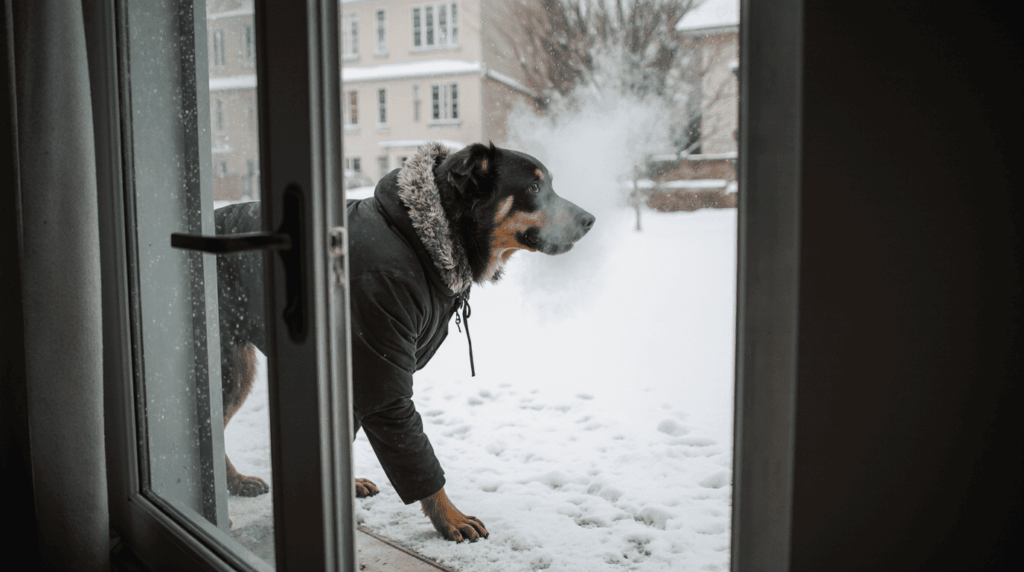 Перепады температур создают дополнительный стресс. Питомец выходит из тёплой квартиры (+22-25°C) на мороз (-10-20°C), а затем снова возвращается в тепло. Такие скачки нарушают работу сальных желёз — кожа не успевает адаптироваться и либо вырабатывает слишком много кожного сала, либо, наоборот, пересыхает.