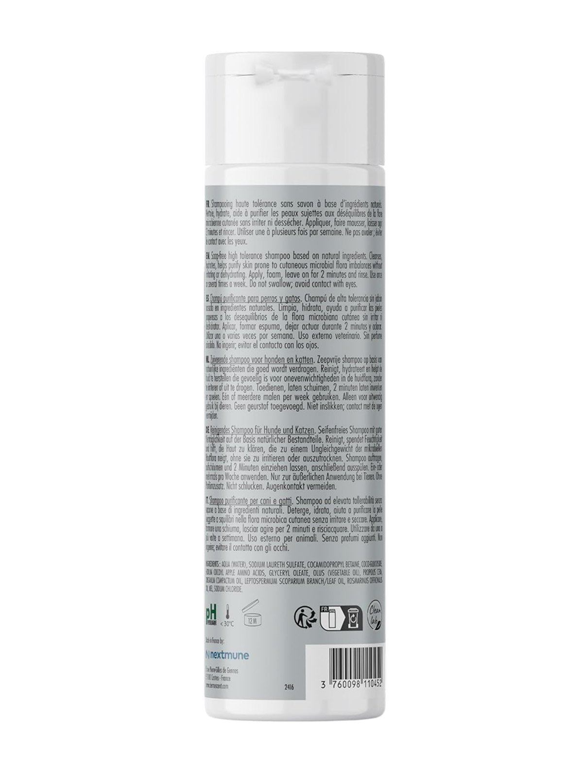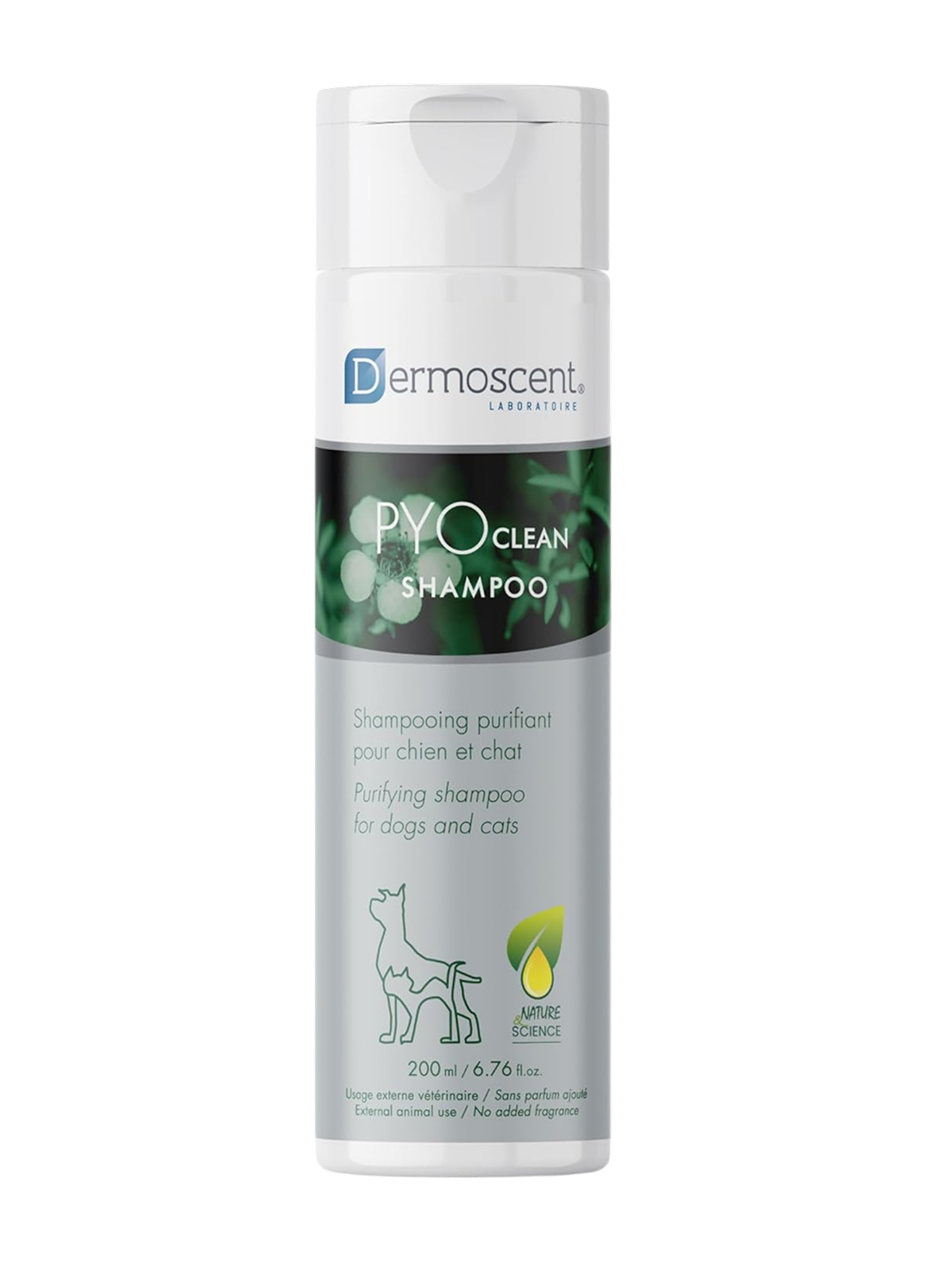 PYOclean Shampoo — это специализированный очищающий шампунь, разработанный французской лабораторией Dermoscent для собак и кошек, страдающих от частых микробных поражений кожи (пиодермия, малассезиозный дерматит). Благодаря своей мягкой формуле без мыла, шампунь эффективно очищает кожу, не пересушивая её, и помогает поддерживать баланс микрофлоры, не вызывая привыкания.