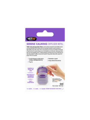 VETIQ Serene Calming Portable Diffuser & Refill — это современная портативная система, разработанная специально для кошек и котят. Комплект состоит из многоразового держателя и активного картриджа, которые вместе создают безопасную среду для питомца. Устройство помогает животным справляться с тревогой разлуки, гиперактивностью и стрессом, вызванным изменениями в привычном образе жизни. Главная особенность системы — полная автономность: диффузор работает без подключения к электросети, проводов и батареек.