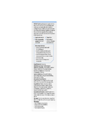 | Назначение | Облегчение боли при прорезывании зубов, дезинфекция полости рта, свежесть дыхания. |