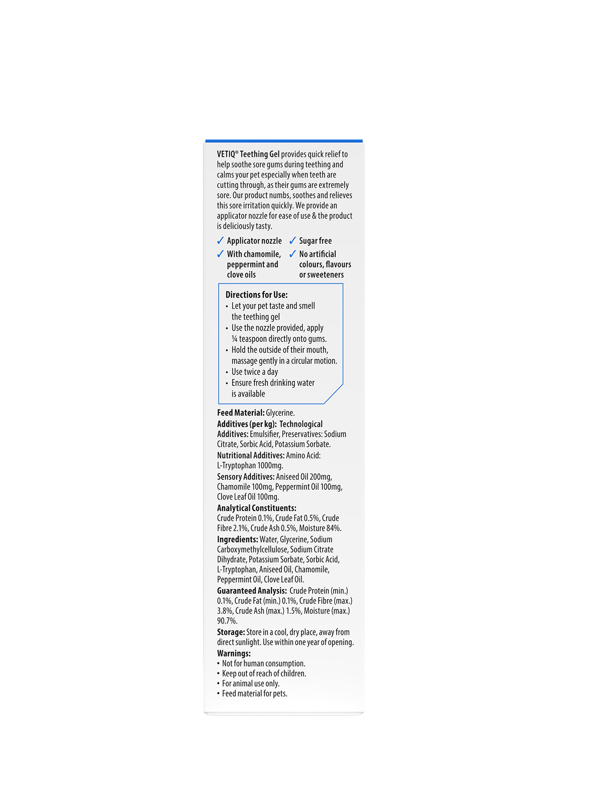 VETIQ Teething Gel — это специально разработанное средство для щенков и котят, обеспечивающее быстрое облегчение при прорезывании зубов. В этот важный период жизни питомца его десны становятся крайне чувствительными и болезненными. Гель эффективно успокаивает и снимает раздражение, помогая вашему любимцу легче перенести дискомфорт, связанный с ростом первых зубов. Благодаря приятному вкусу и удобному носику-аппликатору, процедура нанесения проходит просто и без стресса для животного.